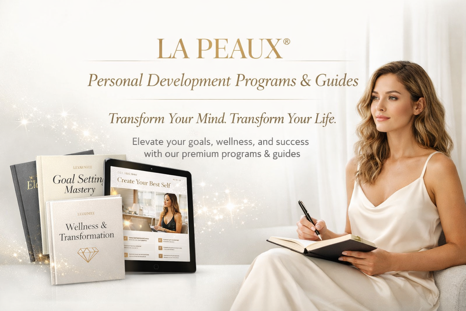 Unlike cookie-cutter programs, LA PEAUX® Personal Development Programs & Guides are built on 18 years of lived experience, blending mindset, wellness, and transformational tools into a luxury, actionable journey that creates real results.