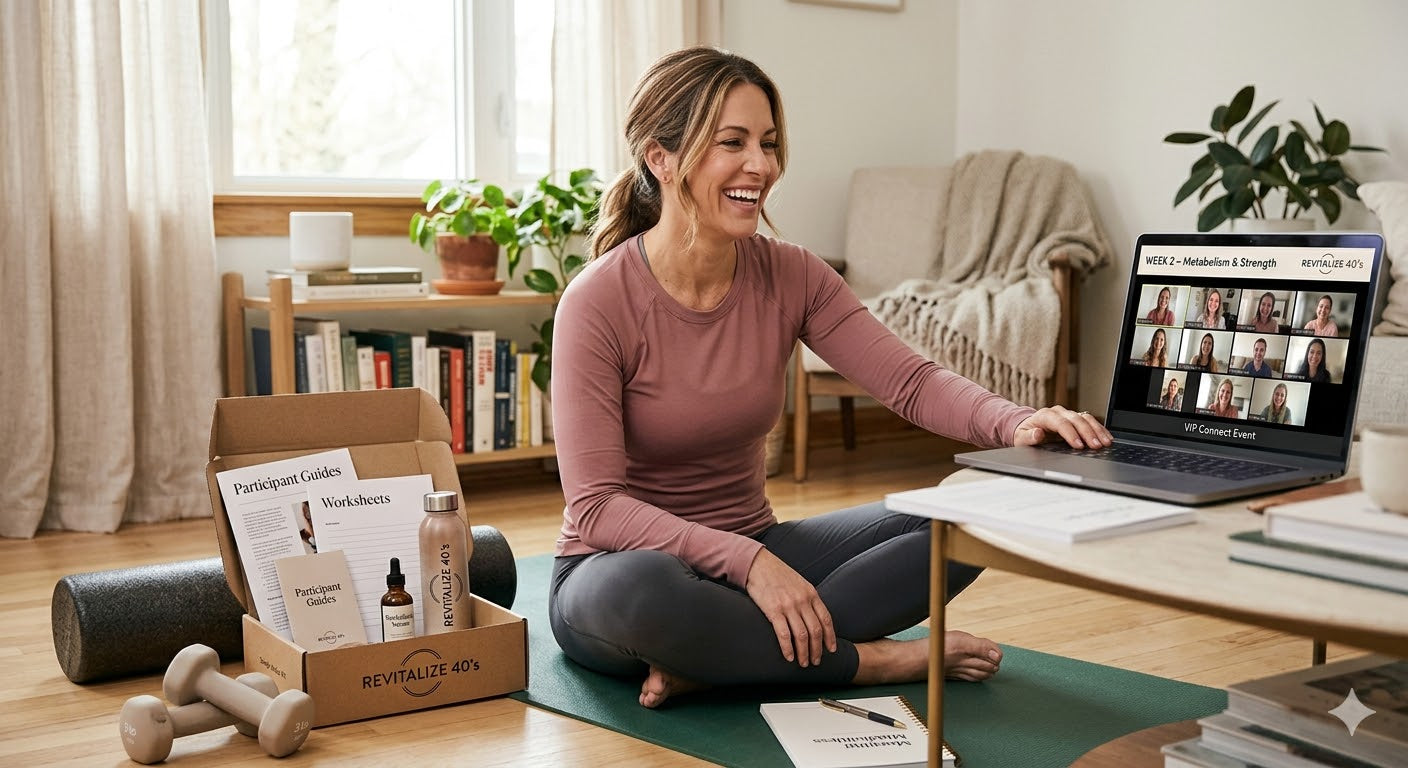 Revitalize 40s Vitality & Wellness Program supports energy, metabolic wellness, and healthy weight management through balanced nutrition, movement, skincare rituals, and lifestyle practices designed for women in their 40s.